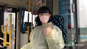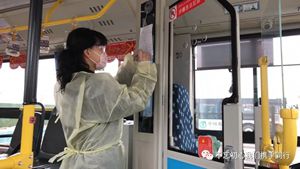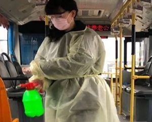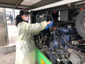 2月24日2路第一天恢復(fù)運營,每部參運車輛多出一名隨車體溫檢測員,王穎跟丈夫分在同車組。早晨6:00,夫妻倆已經(jīng)到2路始發(fā)站唐山站,開始出車前的準(zhǔn)備工作:檢查完車輛安全,再打掃干凈衛(wèi)生,噴灑消毒液對車廂每處角落進行徹底消殺。王穎跟丈夫一對一天輪流開車、進行登記,從唐山站行駛到啟新立交橋后,就要停留兩分鐘嚴(yán)格落實一車次一消毒。遇見急躁的乘客,王穎就耐心勸導(dǎo);有不明白的老年乘客想乘車,她也總不厭其煩地解釋溝通。