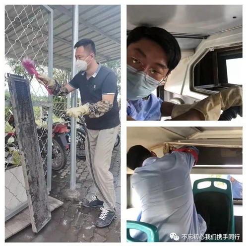 三隊在車輛衛(wèi)生管理方面一直是五公司的標(biāo)兵,不僅起到了帶頭示范的作用,還是發(fā)現(xiàn)問題、解決問題最多的路隊。衛(wèi)生清理過程中,三隊發(fā)現(xiàn)位于公交車內(nèi)部最后方電子顯示屏是車輛衛(wèi)生區(qū)死角,于是,精益求精的他們在實驗了眾多方法后,發(fā)現(xiàn)了利用小型手槍鉆配合氣泵這個方法很實用。小型手槍鉆起到快速拆卸電子屏的作用,對比扳手、螺絲刀等工具更加節(jié)約時間,氣泵吹出的帶有壓力的氣體則有效解決因電子顯示屏屏面凹凸不平、且有縫隙的衛(wèi)生污垢清理問題。這樣的好處是既避免了用水清理電子設(shè)備造成不必要的損壞又能讓公交車的灰塵“釜底抽薪”。另外,針對個別公交車駕駛室配電箱出現(xiàn)爆漆問題,三隊“廢物利用”用廣告紙對其進行粘貼,在節(jié)省資金的同時達到了公交車內(nèi)外整體美化的效果。